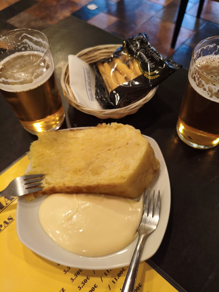 Buen bar, bien situado, junto al aparcamiento público para poder dejar el coche. Las tapas son variadas y ricas, son de buen tamaño, con precios que varían entre los 2,80€ y los 4,20€. La tortilla muy rica y por lo que vimos famosa, ya que casi todas las mesas la pedían. Pedimos la ración de patatas aliñadas y tenían un punto riquísimo de aliño. Las albóndigas de pollo, las salchichas al vino y los chocos a la riojana también estaban buenos. Recomendable y a buen precio, tres personas con 3 tapas y dos cervezas cada uno, más una ración al medio, salió por 52€. Además la atención fue excelente y el servicio rápido.