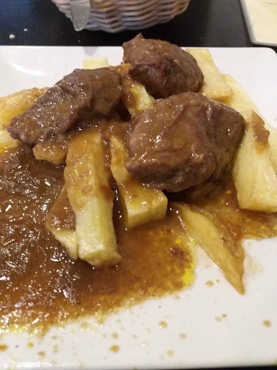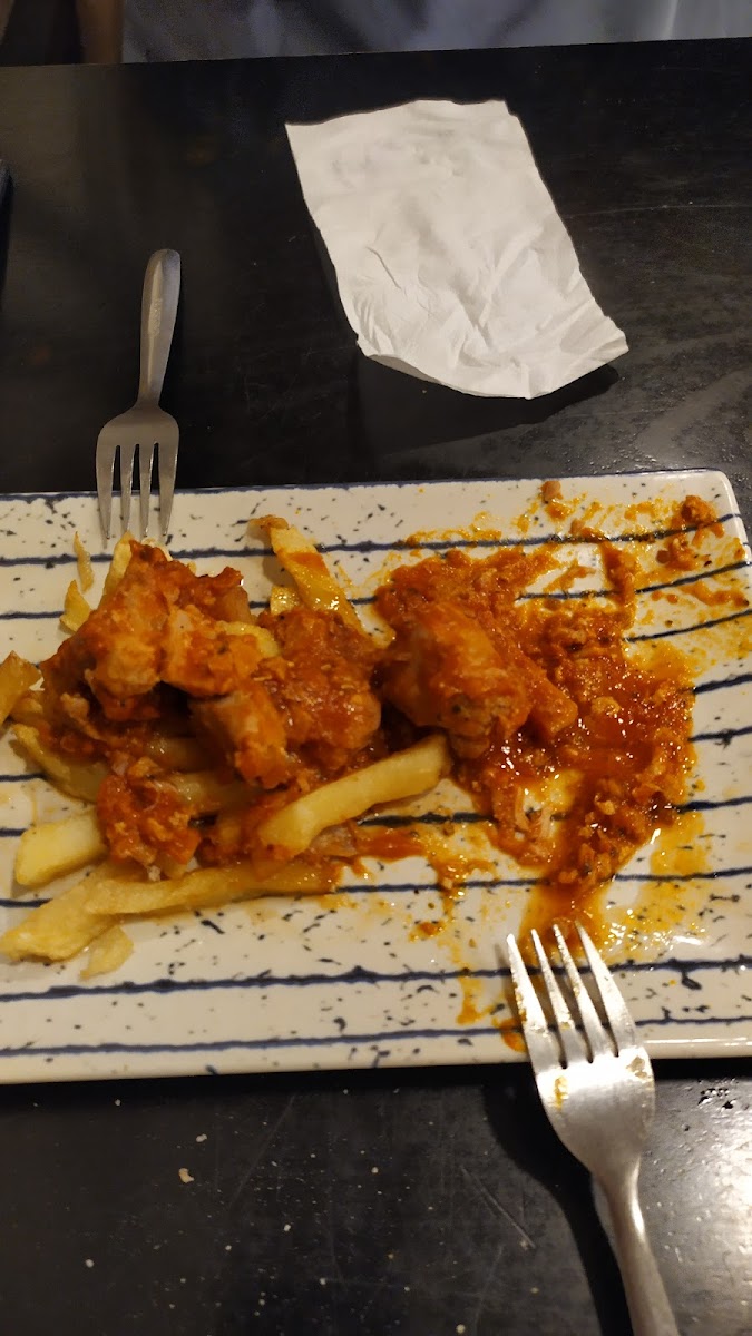 Comida bastante aceptable, destacando que las patatas fritas son frescas y cocinadas por ellos. Tapas generosas. Personal amable. Debido a la afluencia de clientes en algunoa momentos el servicio es más lento, así que hay que ir sin prisas.